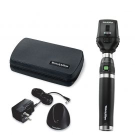- Durch die koaxiale Optik wird im Vergleich zu herkömmlichen Ophthalmoskopen ein schattenfreier Spot, ein leichterer Lichteintritt bei undilatierten Pupillen sowie ein größeres Sichtfeld erzielt
